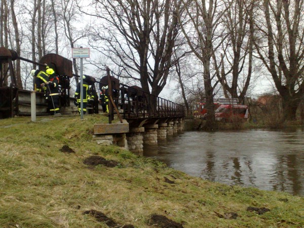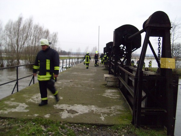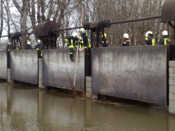 Hochwasser / Wehr von Treibgut befreit