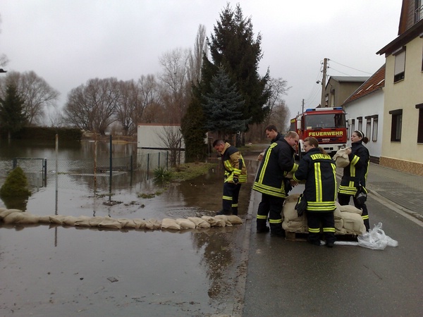 Hochwasser / Sandsackverbau