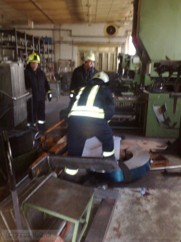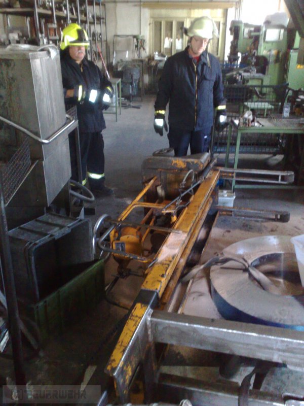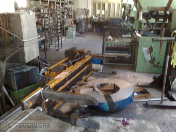 Ausgelaufene Flüssigkeiten nach einem Betriebsunfall in einer Stahlbaufirma