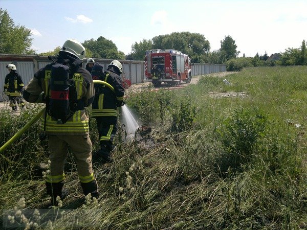 Dieser Einsatz wurde den Kameraden der Ortsfeuerwehr Löderburg als Brand einer Garage gemeldet. Nach dem Eintreffen der Einsatzkräfte, stellte sich dieser Einsatz aber als ein Flächenbrand heraus, der durch die Kameraden sehr schnell abgearbeitet werden konnte.
