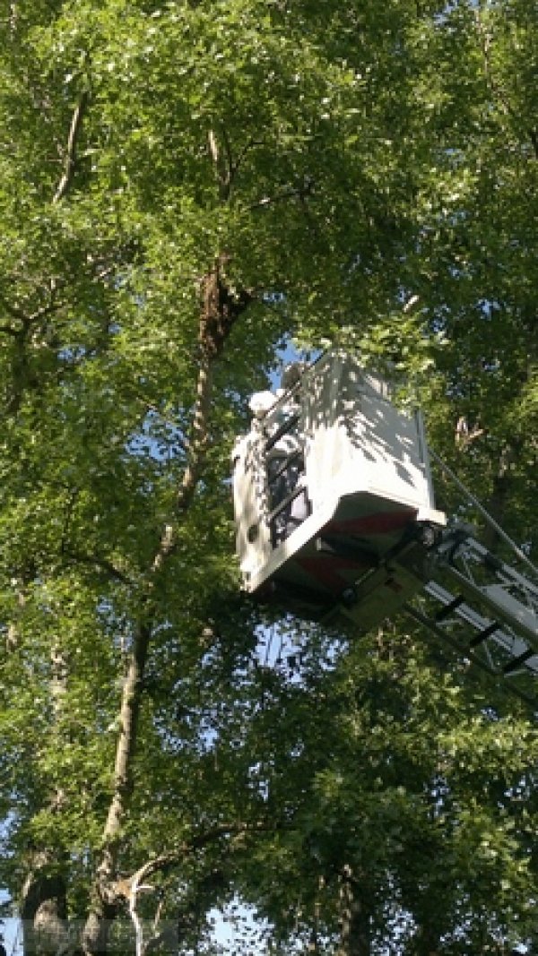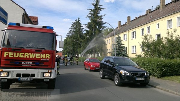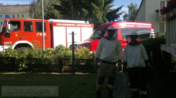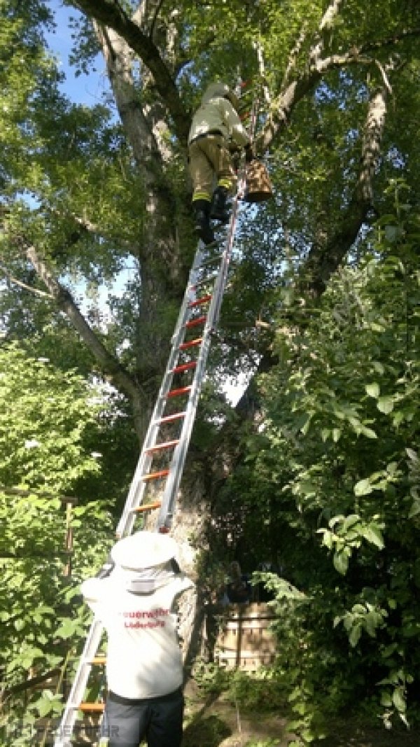 Die Kameraden wurden von der Leitstelle zu einer Tierrettung alarmiert. Bei der Lageerkundung stellte sich heraus, dass es sich um einen Bienenschwarm handelte. Die Einsatzkräfte vor Ort, begannen mit einen Sprühstrahl einen Regen zu simulieren und damit die Bienen zu beruigen. Parallel dazu brachten nachrückende Kräfte einen Ortsansässigen Imker mittels Mehrzweckfahrzeug (MZF) zur Einsatzstelle. Um 17:45 Uhr wurde durch den Einsatzleiter vor Ort, die Drehleiter (DLK) der Ortsfeuerwehr Staßfurt nachgefordert, da ein herankommen mit der Steckleiter zum Biernschwarm nicht mehr möglich war. Die Einsatzkräfte der Ortsfeuerwehren setzten sich wie folgt zusammen: Löschfahrzeug FF Löderburg : 9 Einsatzkräfte; Mehrzweckfahrzeug FF Löderburg: 4 Einsatzkräfte Drehleiter FF Staßfurt:: 3 Einsatzkräfte.