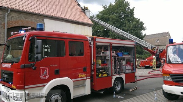 Zu einem Dachstuhlbrand in Glöthe wurde die OF Löderburg nachalarmiert, da eine Wärmebildkamera am Einsatzort benötigt wurde.