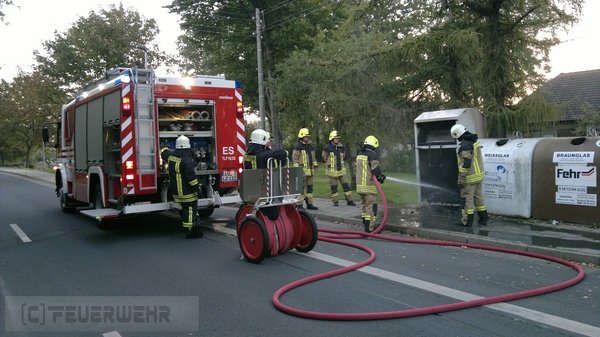 So lautete die Alarmierung am heutigen Morgen. 14 Kameraden machten sich noch im Halbschlaf auf den Weg zum Gerätehaus und besetzten mit 9 Kameraden (Gruppenbesatzung) das Tanklöschfahrzeug der Ortswehr. Weiterhin wurde die Festfunkstation der Wehr durch einen Kameraden besetzt, der im Einsatz die Aufgaben übernimmt, das Einsatztagebuch zu führen und als Ansprechperson des Einsatzleiters weiterhin im Gerätehaus zur Verfügung zu stehen. Die restlichen Kameraden verblieben im Gerätehaus und warteten auf weitere Meldungen von der Einsatzstelle um falls erforderlich ein weiteres Fahrzeug besetzen zu können und zum Einsatzort zu fahren. Der Einsatzleiter, bestätigte der Leitstelle nach dem Eintreffen am Einsatzort den Brand eines Kleidercontainers und meldete der Leitstelle „Kräfte und Mittel ausreichend“. Dies bedeutet, dass keine weiteren Einsatzkräfte und Fahrzeuge am Einsatzort benötigt werden und der Einsatz mit den vorhandenen Kräften und Einsatzmitteln abgearbeitet werden kann. Die Kameraden arbeiteten den Einsatz ab und wir konnten uns bei der Leitstelle nach einer halben Stunde wieder einsatzbereit im Gerätehaus melden.