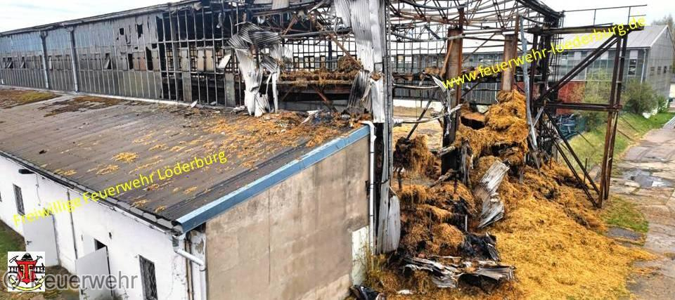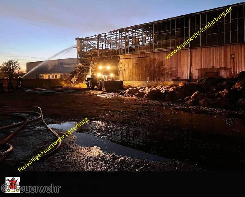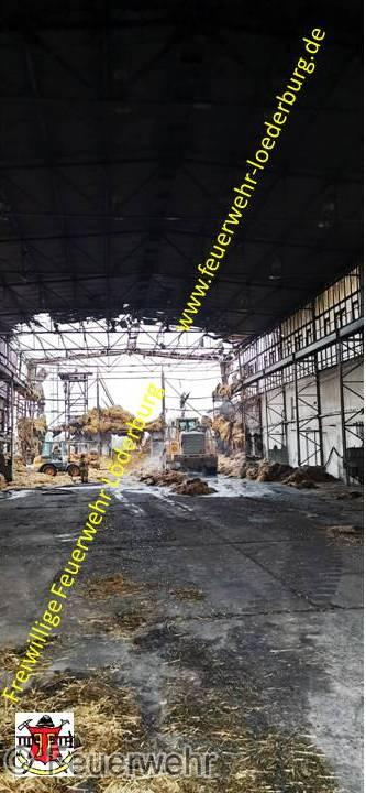 An den folge Tagen erfolgte durch weitere Feuerwehren in einer Brandsicherheitswache, das Befördern von Stroh aus den Lagerhallen auf eine Freifläche um dies erneut auseinander ziehen und ablöschen zu können.