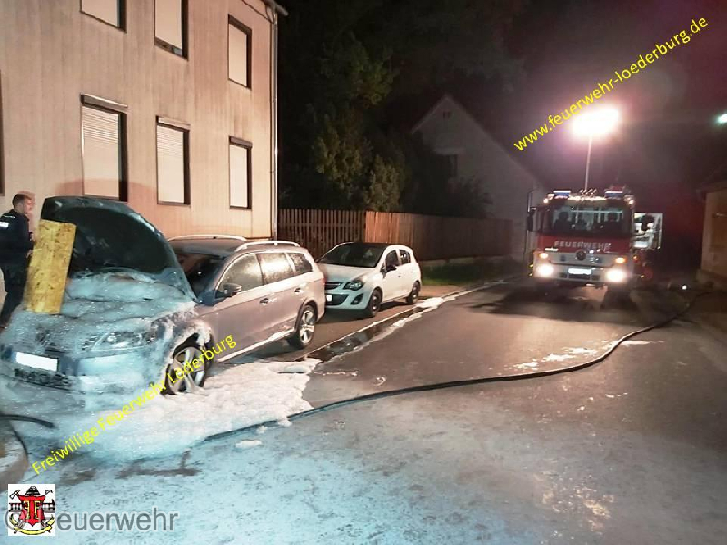 Es handelte sich um einen PKW-Brand, welcher bereits durch einen Zeugen des ADAC – Abschleppdienst – Autohaus Helbig und dem Fahrzeughalter versucht wurde abzulöschen. Der Erstangriff erfolgte durch diese Personen mit Kleinlöschgeräten.