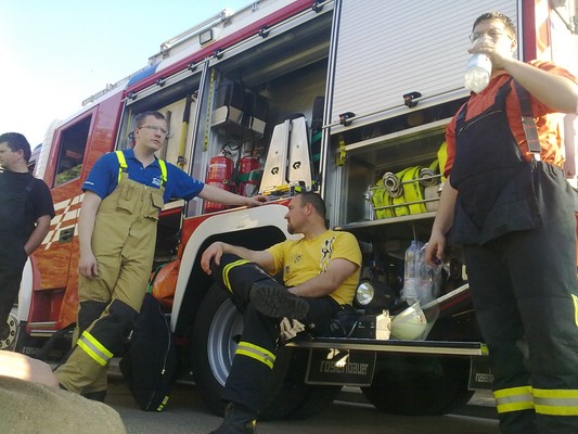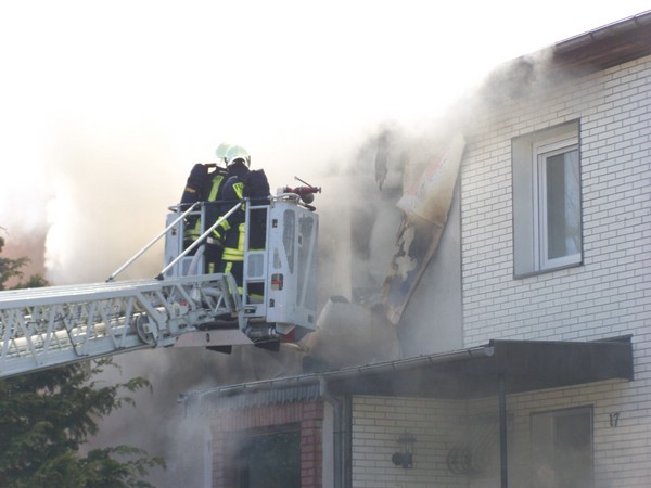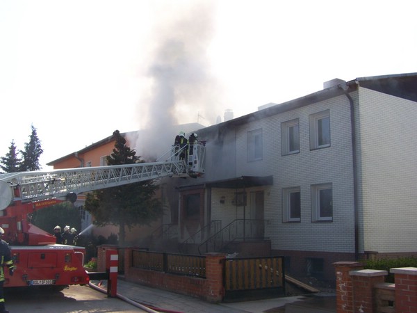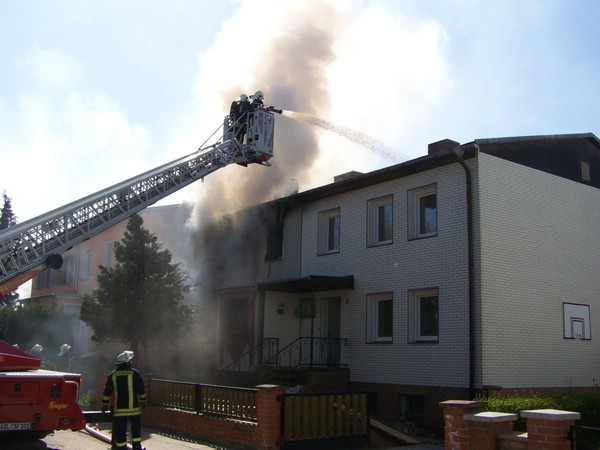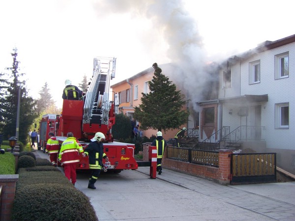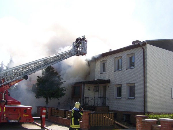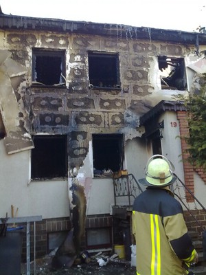Ein Wohnhaus brannte in voller Ausdehnung, der Brand wurde von 12 Trupp`s unter schweren Atemschutz mit 2 C-Rohren gelöscht. Zur Restablöschung hat sich unsere Wärmebildkamera wiedermal bezahlt gemacht.
