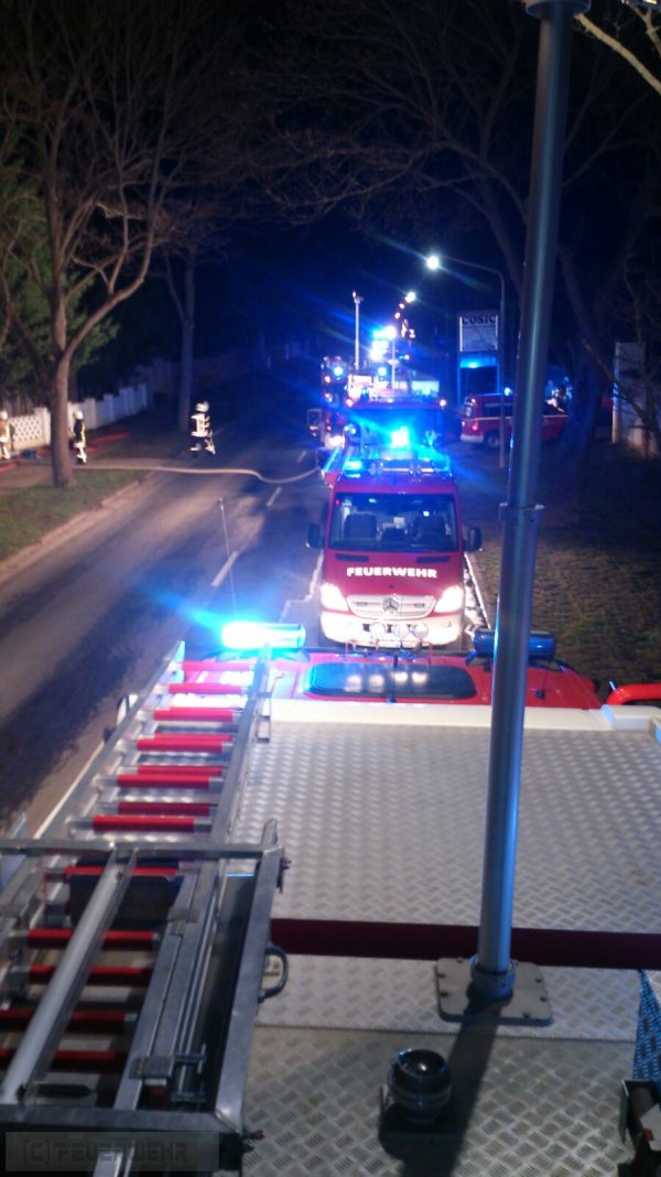 Das Übergreifen des Feuers auf benachbarte Gebäude konnte durch die vor Ort befindlichen Einsatzkräfte verhindert werden.