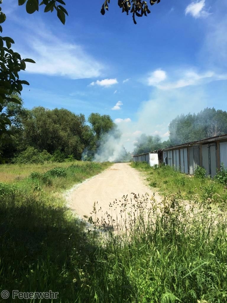 Alarmiert wurden wir bei diesem Einsatz zu einem Grasnarben Brand mit Ausbreitung, hinter den Garagen.