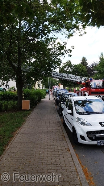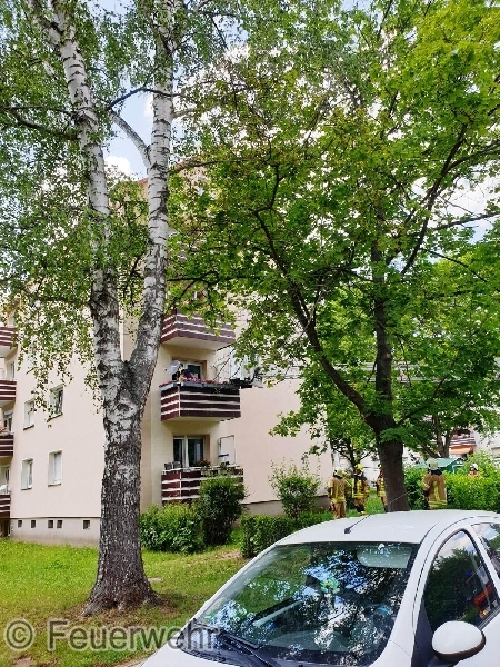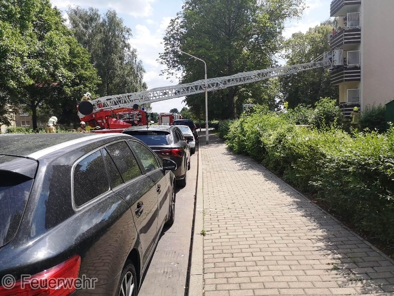Die Wohnung, welche sich in der 2. Etage des Wohnhauses befand, wurde mittels Drehleiter (DLK) über ein angekipptes Fenster der Wohnung betreten.