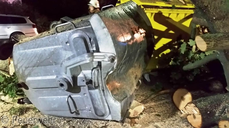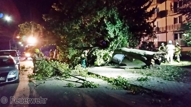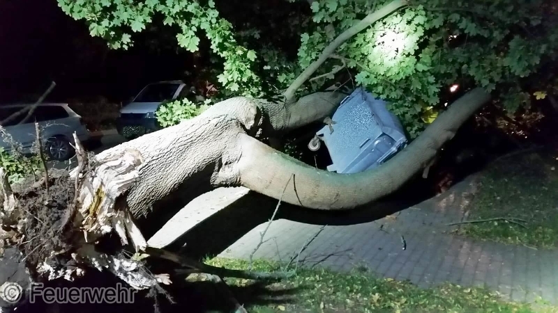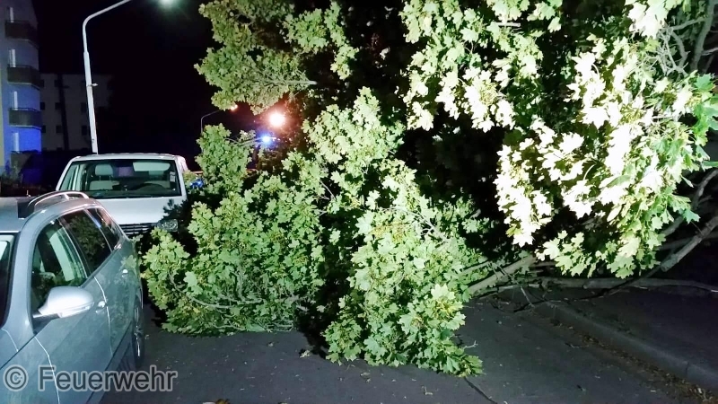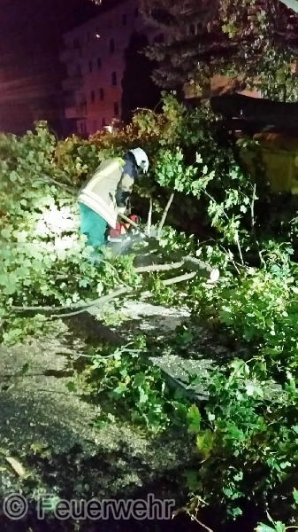 Die Lage bestätigte sich, es handelte sich um einen umgestürzten Baum der sowohl die Straße als auch den Fußweg blockierte.