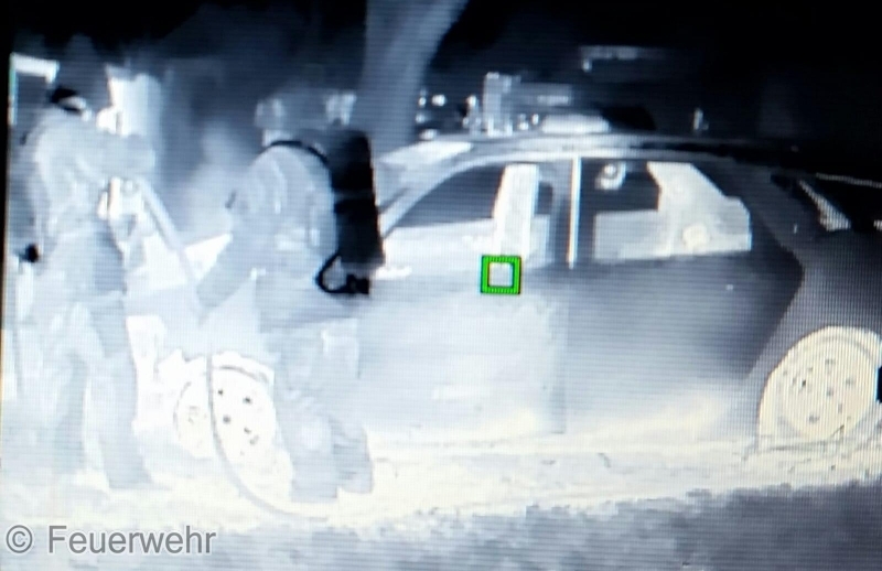 Wir unterstützen die Löscharbeiten mithilfe der Wärmebildkamera.