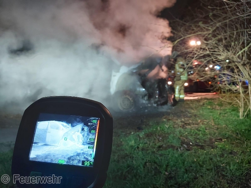 An der Einsatzstelle stand der Motorraum eines PKW - VAN in Vollbrand.