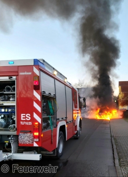 Es handelte sich um einen VW Caddy, der bereits in Vollbrand stand.