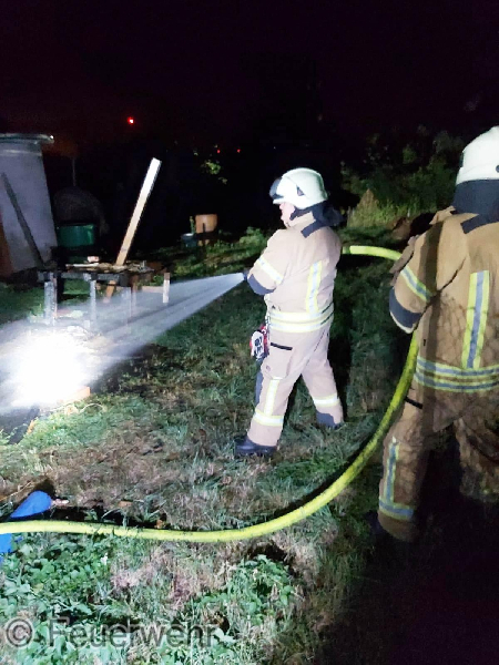 Bei der Einsatzmeldung handelte es sich um einen Brand eines Schuppens / Heu - Tiere in Gefahr